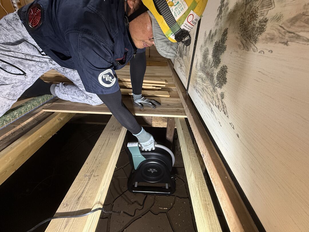 「現在、私は鹿児島県姶良市において被災家屋の応急復旧を行っており、早速、床下の換気・乾燥の現場で活用させていただいております。小型軽量でありながら風量も力強く、これまで使用してきた機材の中でも特に有用であると実感しております。」