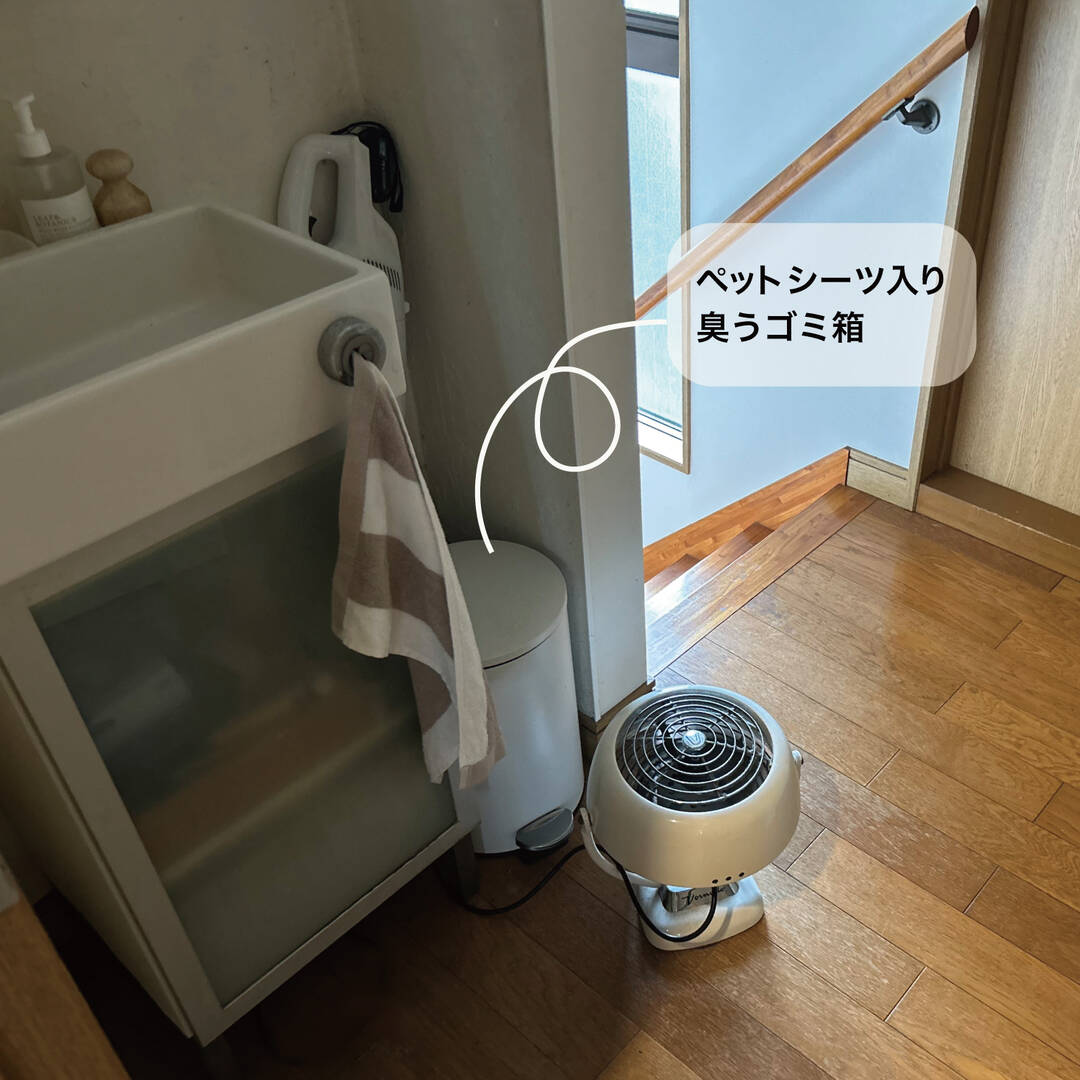 ▪️湿気の多い日に、使用済みペットシーツを捨てる洗面台横のゴミ箱まわりが臭う