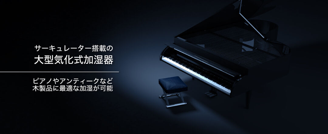ピアノなどの木製楽器、またアンテイーク家具などデリケートな木製品には、気化式加湿器EV200-JP、HM4.0-JPの2機種がおすすめです。