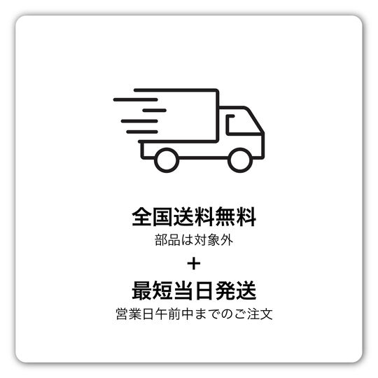 当ストアでご購入いただいた場合に、部品を除いた全ての商品を、北海道や沖縄・離島を含む、全国一律送料無料でお届けします。