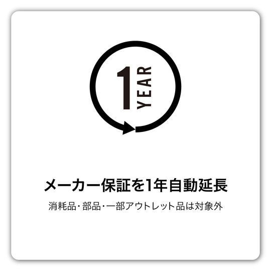 当ストアでご購入いただいた場合に、通常のメーカー保証に加え保証期間を1年間延長いたします。